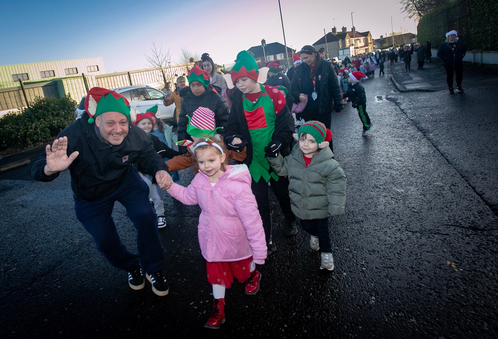 Enjoying Friday's 'Elf Run' at Holy Child PS.