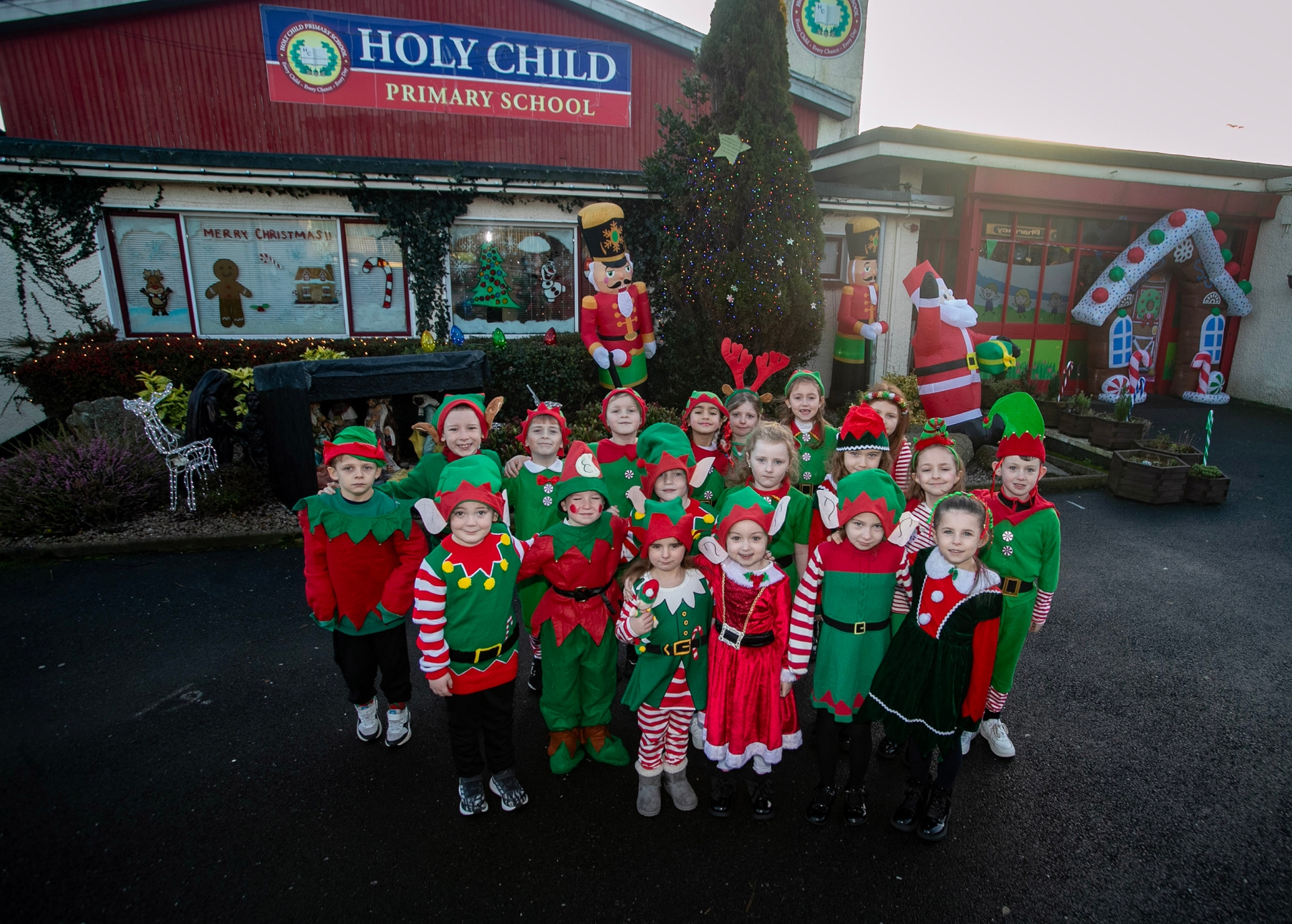 A number of the younger pupils pictured before Friday's 'Elf Run'.