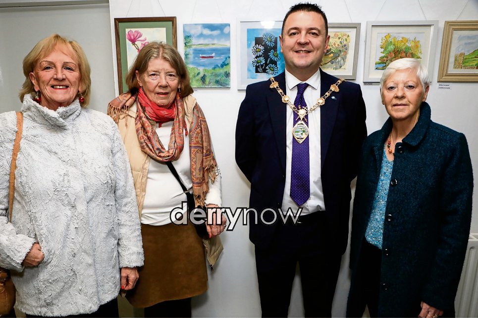 Mayor Ruairí McHugh with on right Majella Heaney, chairperson, managing committee, and on left, Eibhlin O'Donnell and Aideen Corr at the Students Christmas Exhibition.