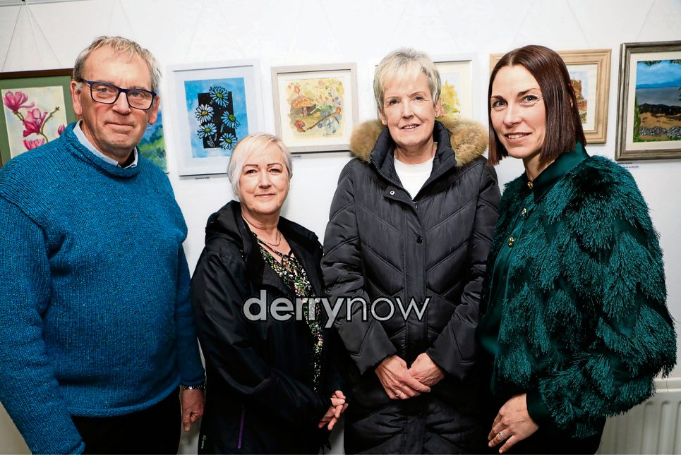 Tutor artist David Fahy with from right, Caitriona Lyttle, Caroline Doran and Caroline McLaughlin.