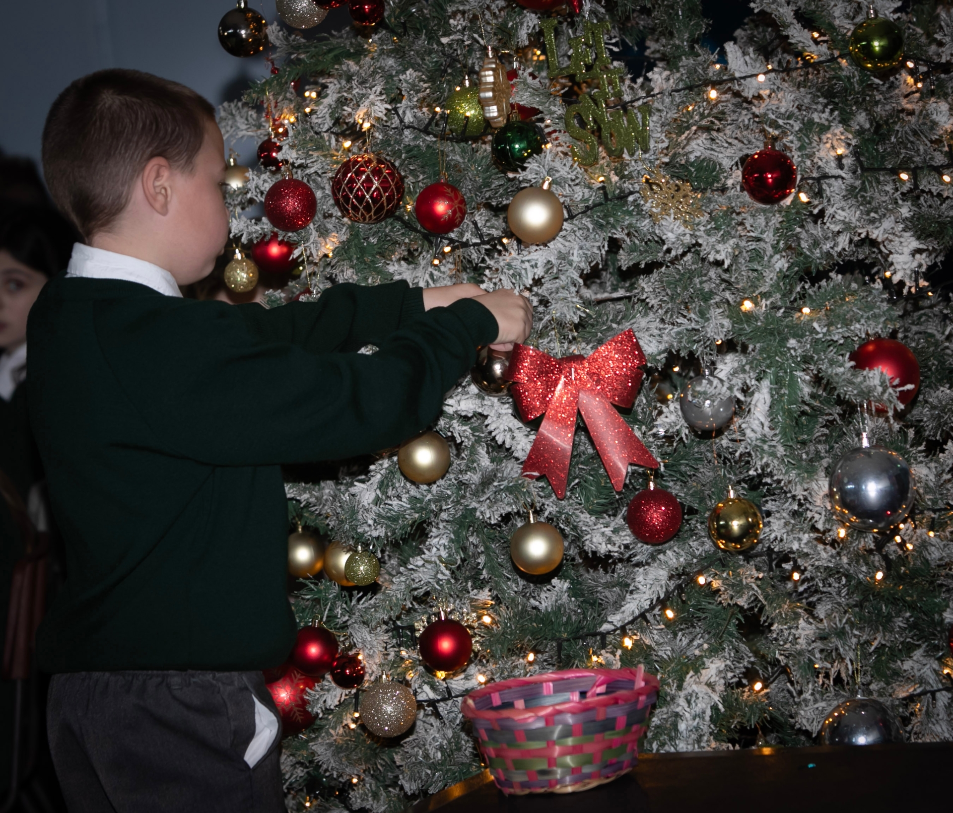Pupils place baubles on the school Christmas Tree during last week's event.