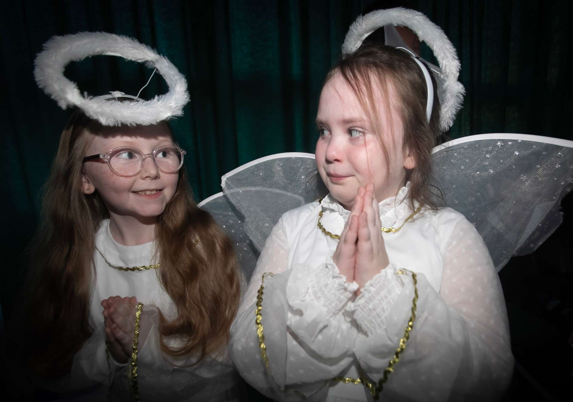 Two of the Angels prepare to go on stage at Greenhaw PS.