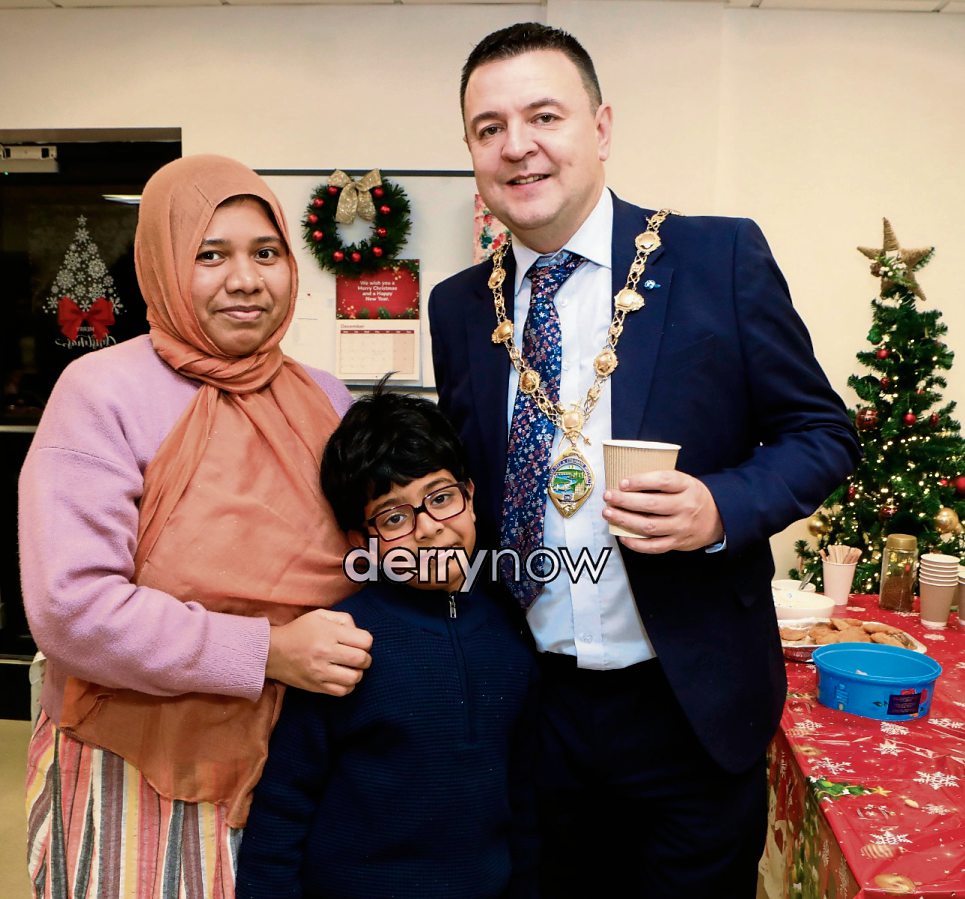 Mayor Ruairí McHugh with Irene and her son Adrigan.