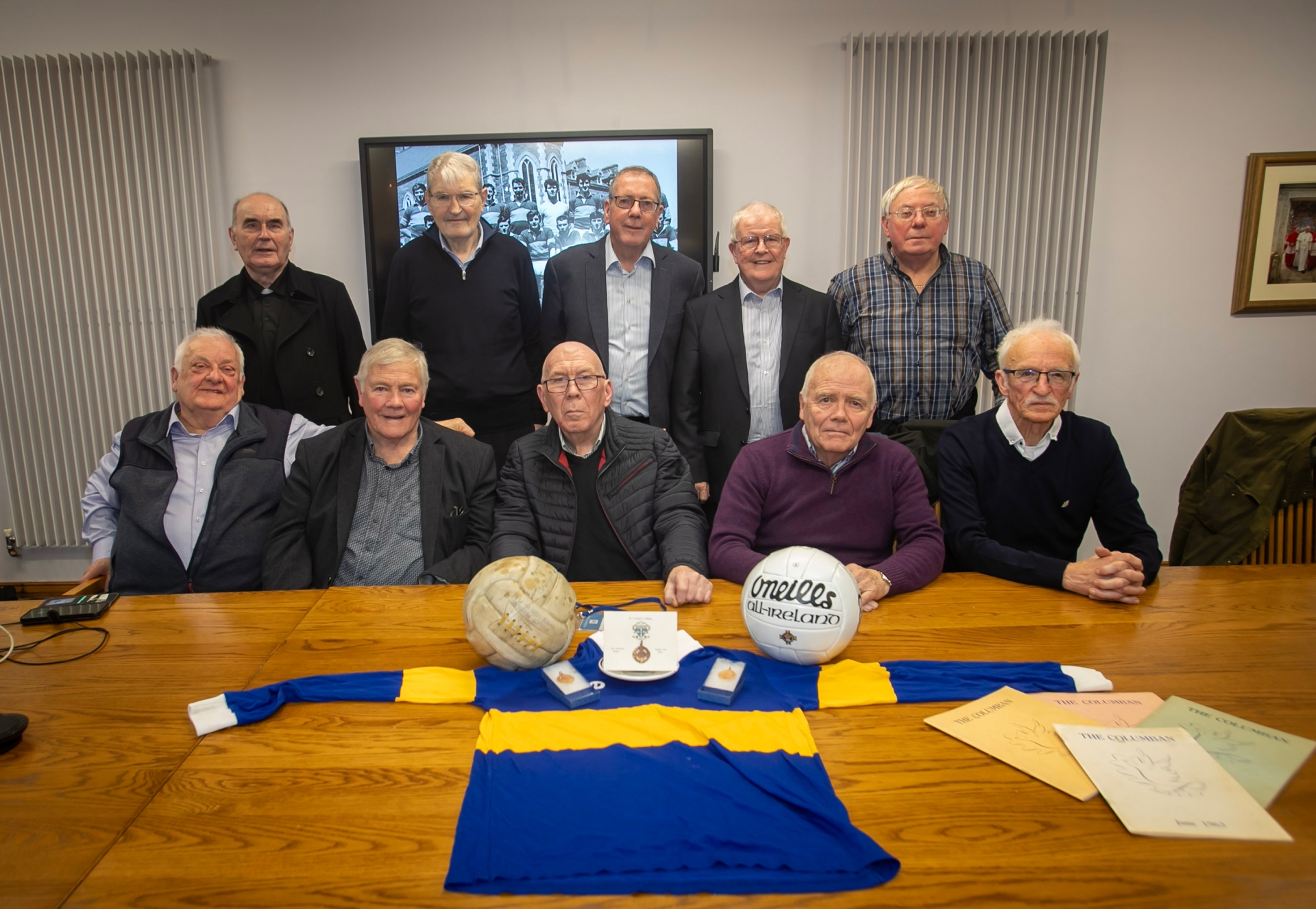 HOGAN CUP 1965 WINNERS!. . . .Some of the history-making Hogan Cup team from St. Columb's College pictured on Thursday last. Front row, left to right, Chris Brown, Matt Trolan, Brendan (Barney) Mullan, Pat McGonagle, Tony O’Doherty. Back row, left to right, Br Monsignor Andy Dolan, Harry McGill, Michael Trolan, Phil Friel, Anthony Furey. (Photos: Jim McCafferty Photography)