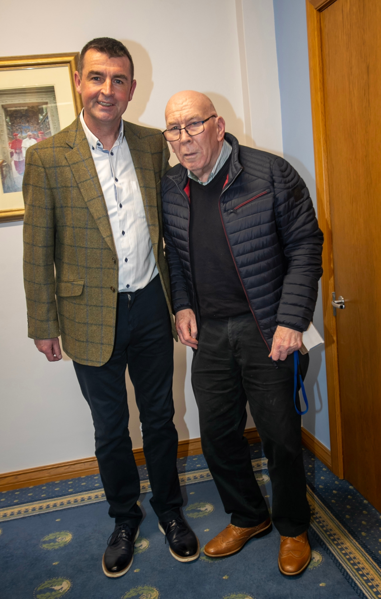 Hogan Cup event organiser and Head of PE at St. Columb's Mr. Eamonn Burns pictured with Hogan Cup hero Brendan (Barney) Mullan.