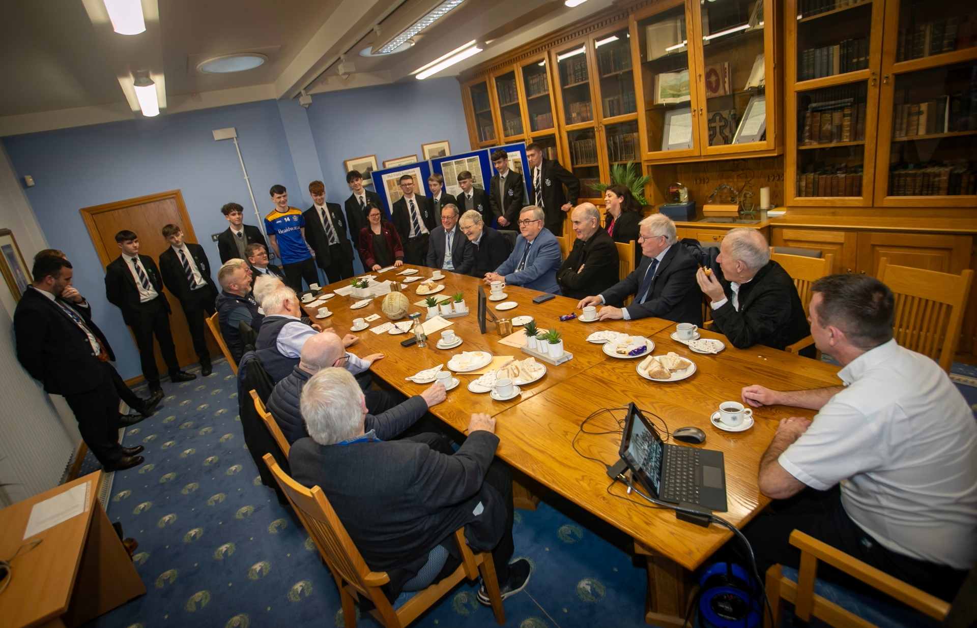 The Hogan Cup players taking questions from some of the students on Thursday.