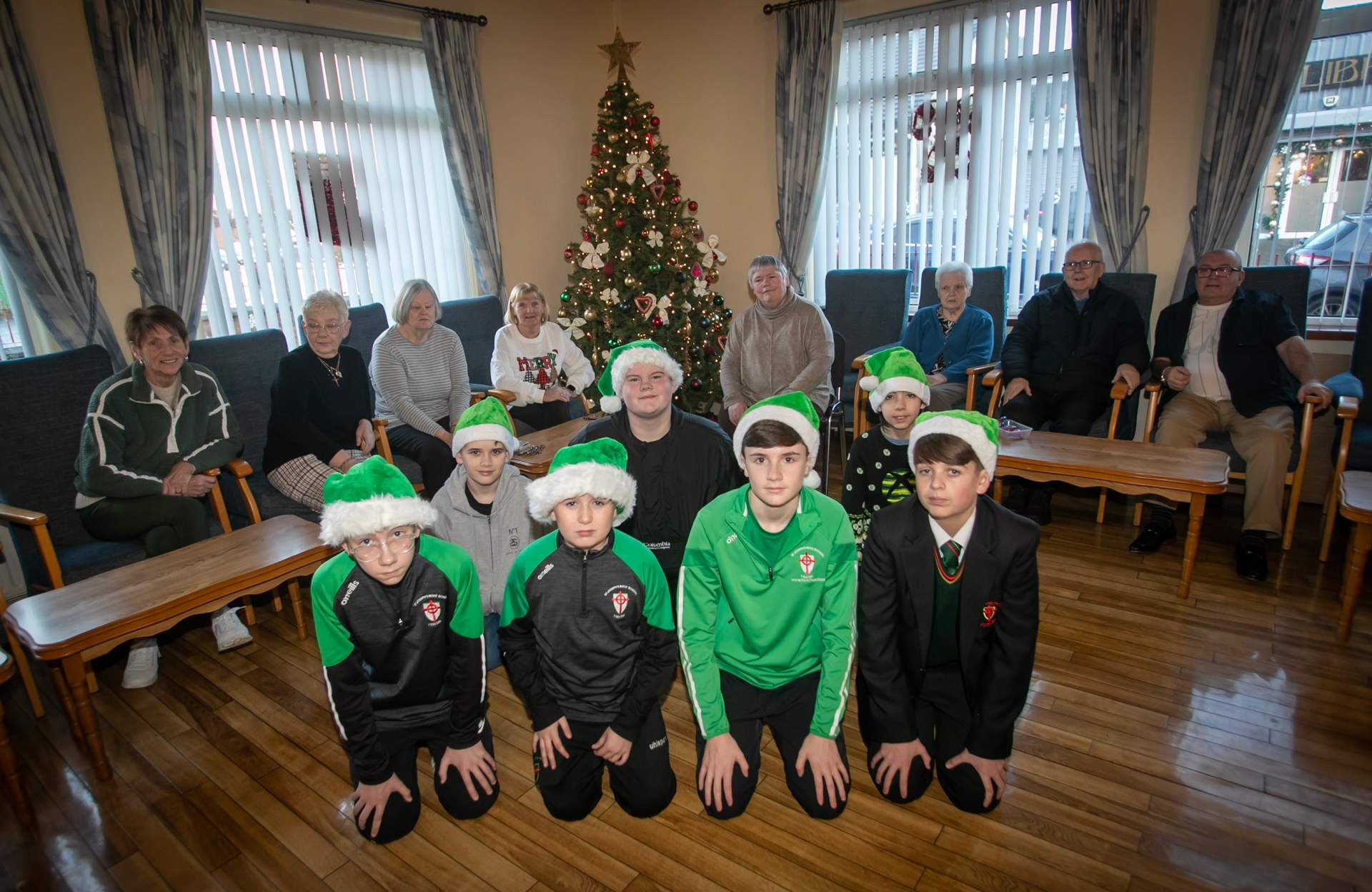 SPREADING CHRISTMAS CHEER. . . . .Some of the St. Joseph's Boys School students who took part in the English Department's 'Spreading Our Catholic Ethos Festive Cheer' to residents of Beechwood Court on Friday morning. The boys 'wrote letters to residents' and brought buns, chocolates and refreshments. (Photos: Jim McCafferty Photography)
