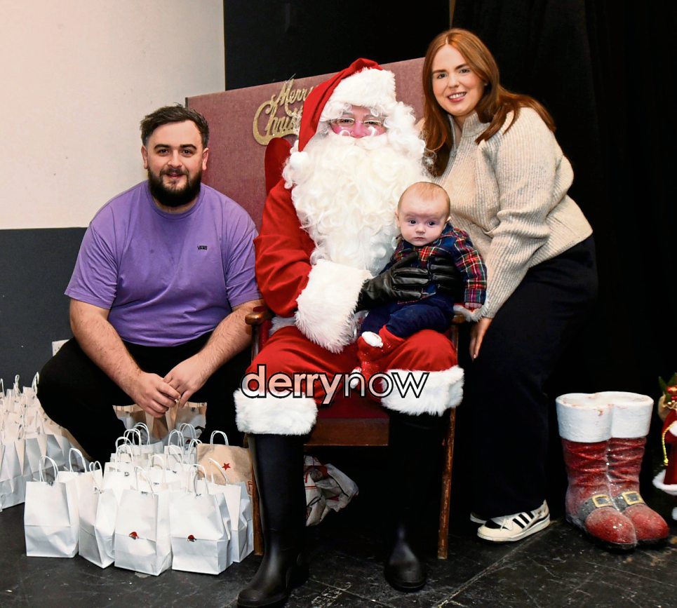 Tadhg and his parents Connor and Emer enjoy Breakfast with Santa in An Cumann, Dungiven.