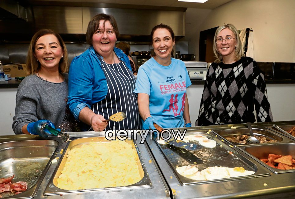 Serving up the breakie, from left, are Marie Rose, Joanna, Sarah and Debbie.