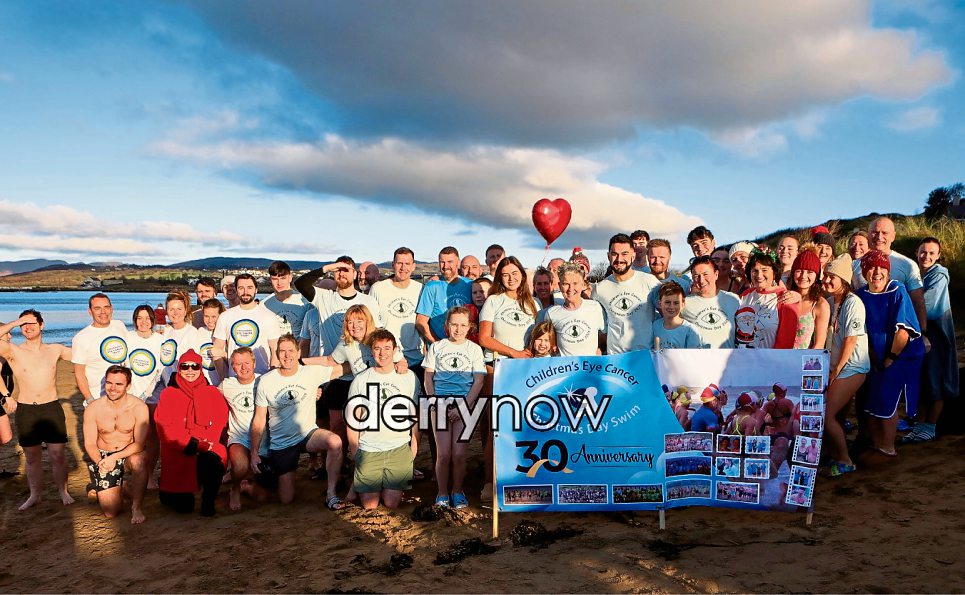 Group gathered in aid of Children's Eye Cancer, marking the 30th anniversary, for the Christmas Day swim at Ludden Beach. (Photos - Tom Heaney, nwpresspics)