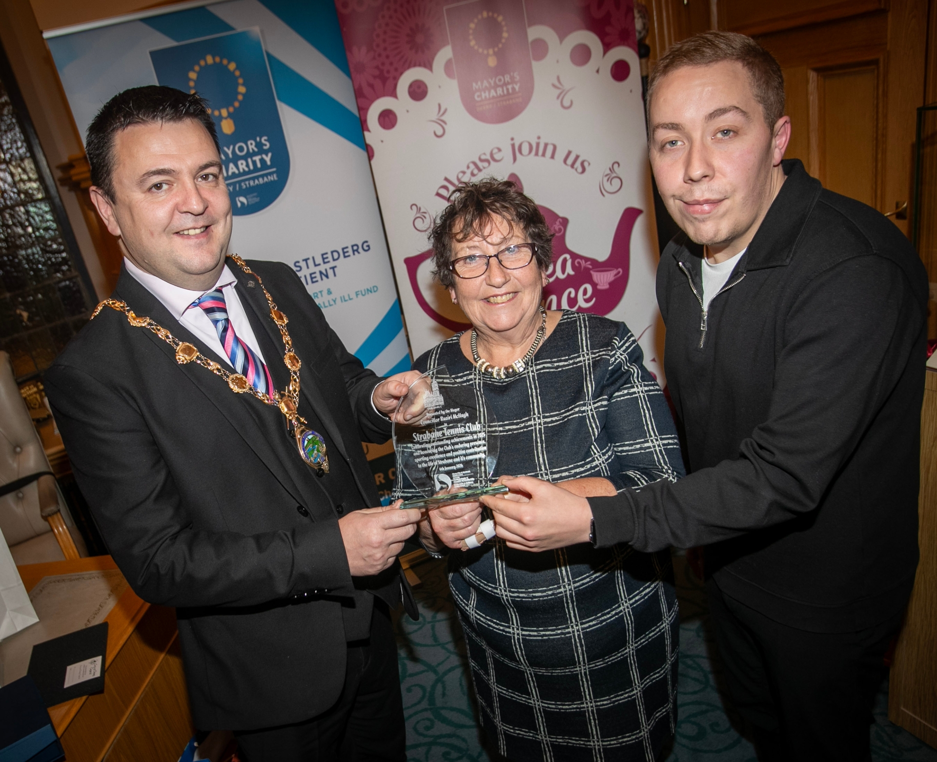 Mayor McHugh pictured with mother and son, June Neill (club secretary) and Christopher Neill-Smith at Tuesday's reception in the Guildhall, Derry.