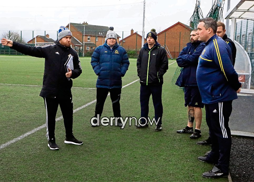 IFA coach Ronan O’Donnell facilitator with Don Boscos club coach at the IFA NCC Coaching Course at Leafair pitches. (Photos - Tom Heaney, nwpresspics)