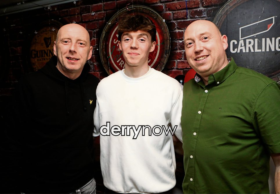 Callum Downey celebrating his 18th birthday with dad Paul and uncle John.