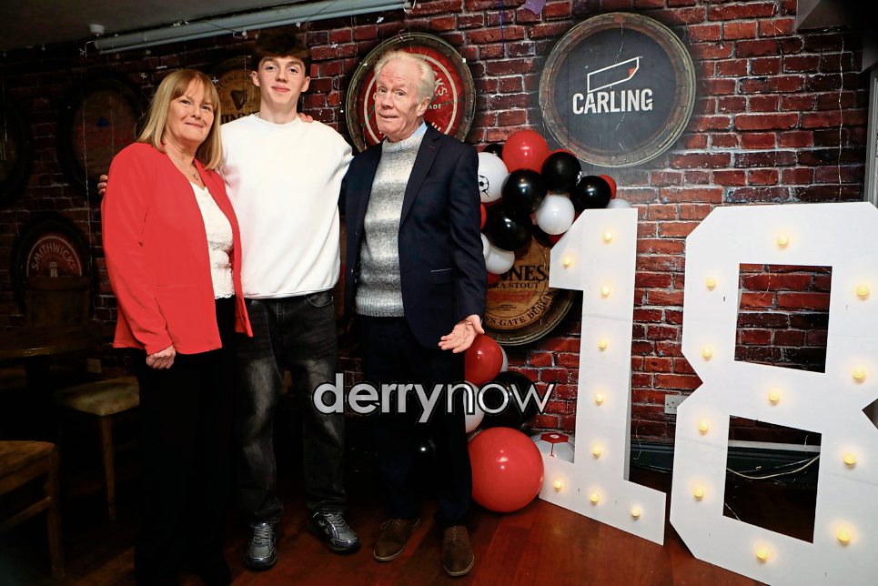 Callum Downey celebrating his 18th birthday with grandma Bernie and grandad Pat.