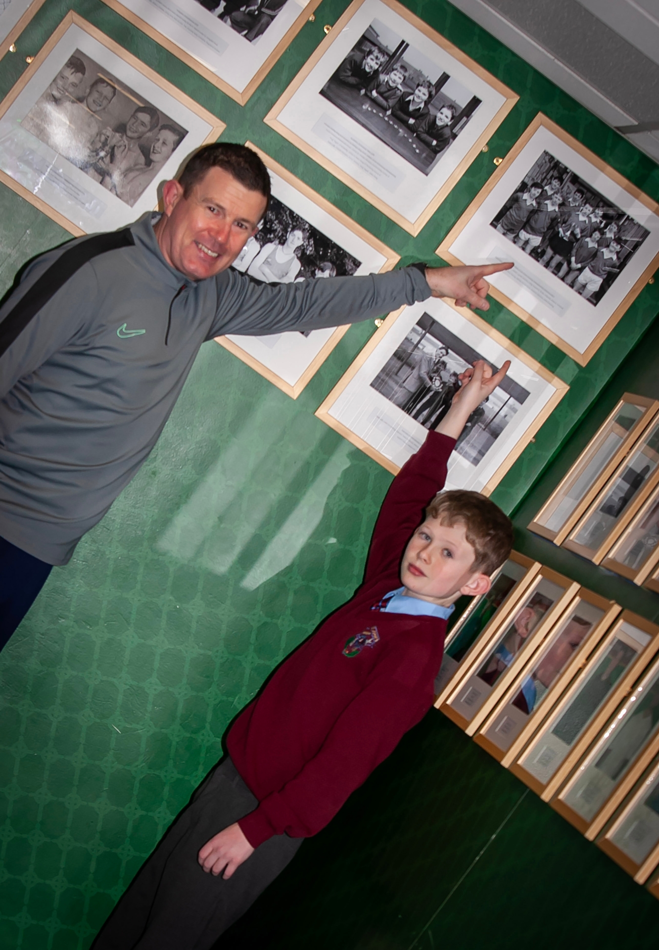 THAT'S ME!. . . .Dad Damien Liddy showing his son Caydn his photo at the St. Joseph's Hall of Fame on Thursday night. (Photos: Jim McCafferty Photography)