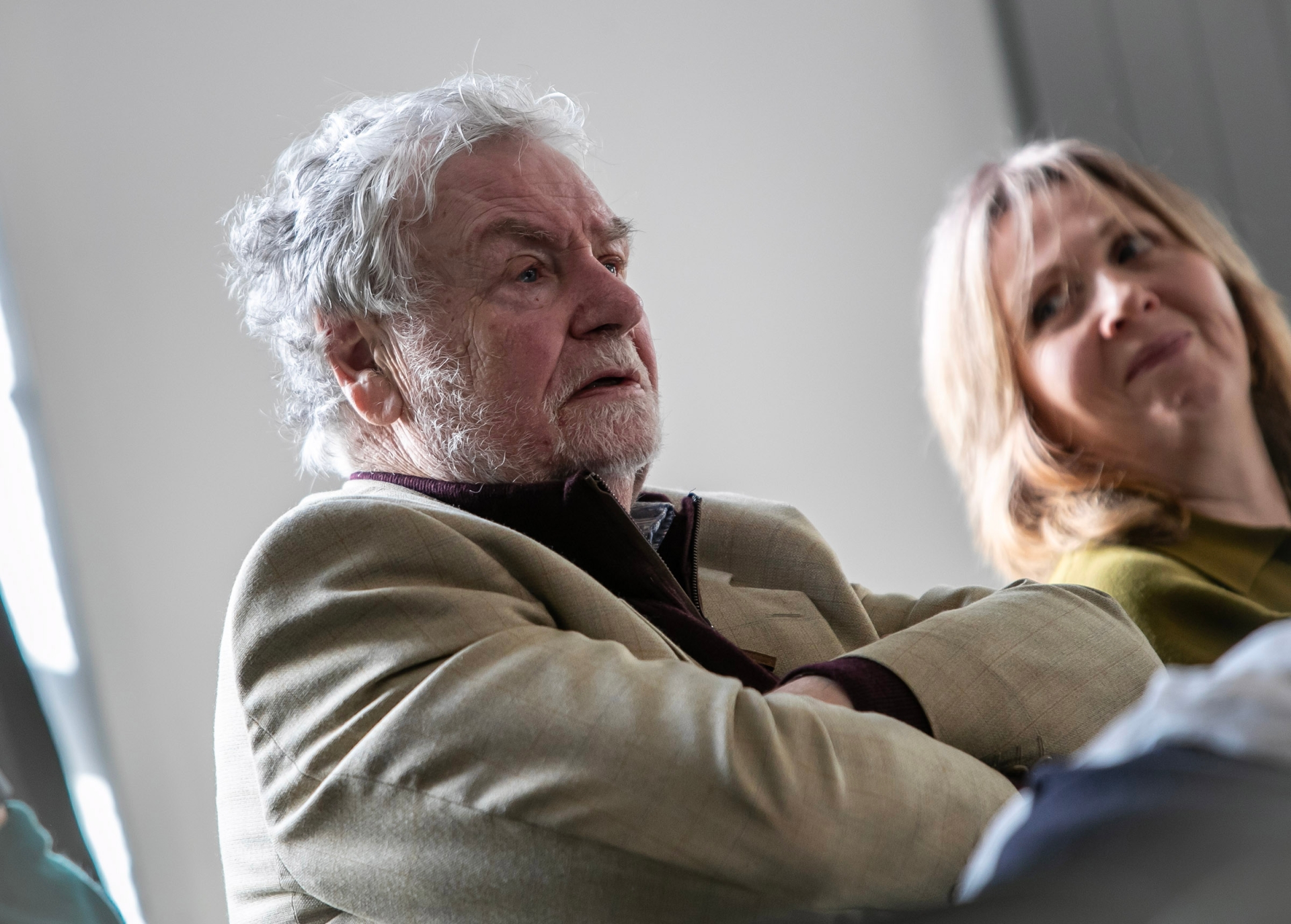 Former Irish Ambassador Jim Sharkey asks a question during Tuesday's event.