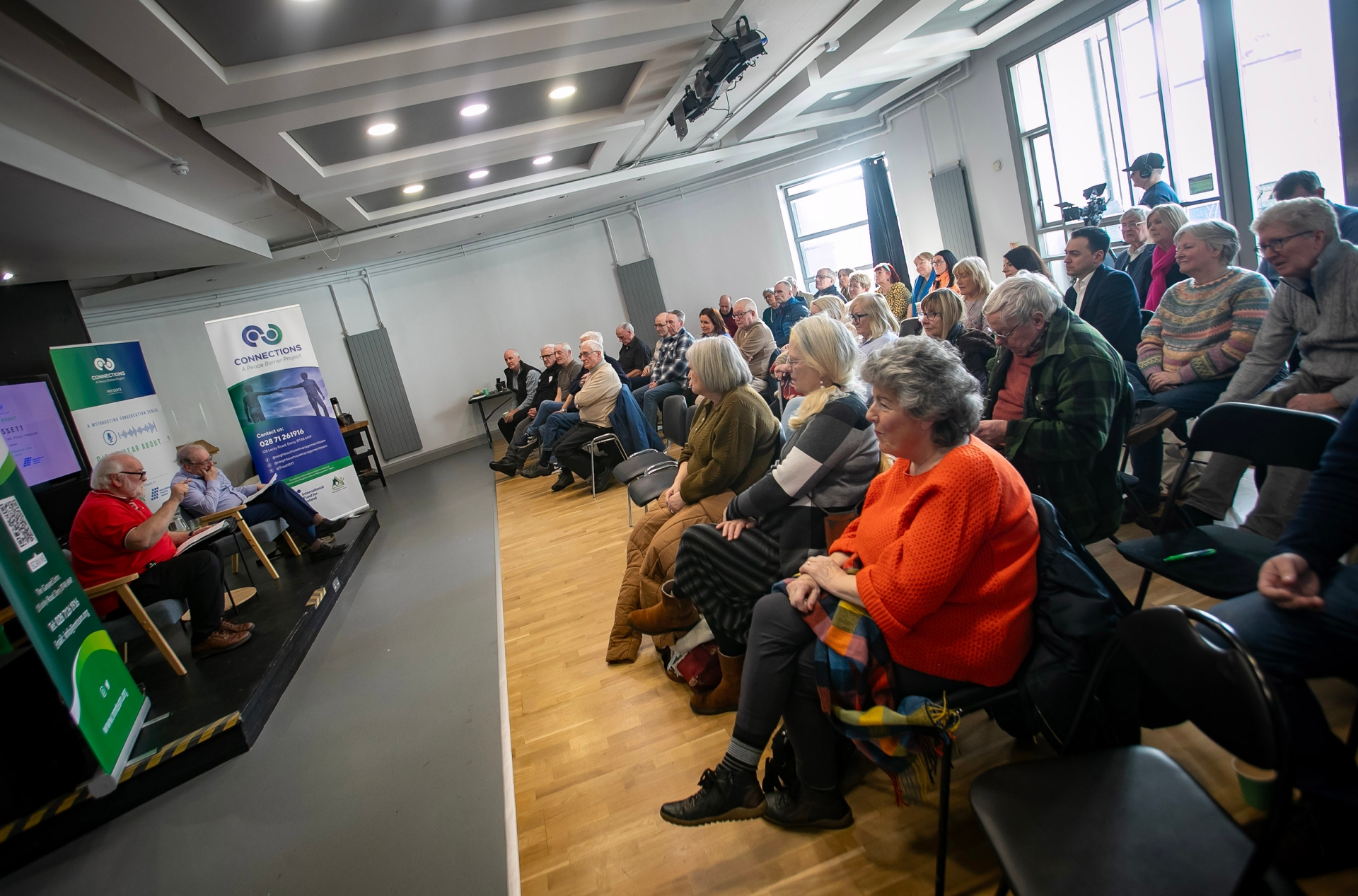 Chair Pat McArt takes questions from the audience at Tuesday's 'Did Ye Hear About. . . . ' event in the Gasyard, Derry. (Photos: Jim McCafferty Photography)