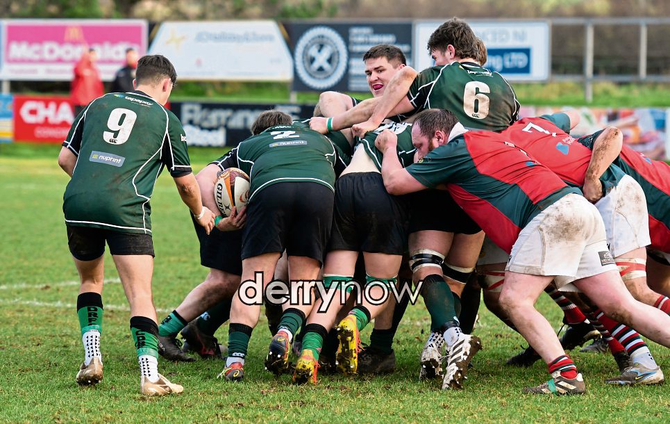 City of Derry control this rolling maul during Saturday's match against Larne.