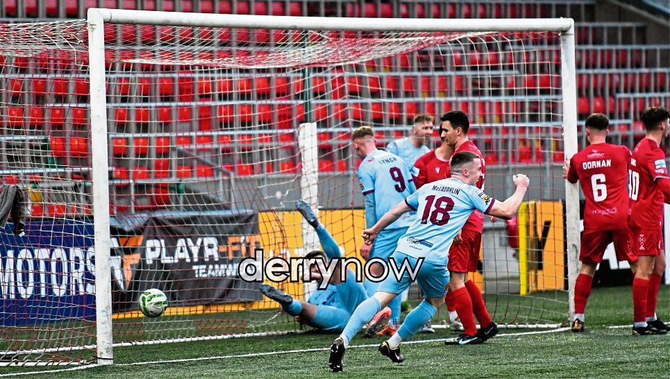 The Institute players celebrate after Shane Boyle's goal against Dundela.