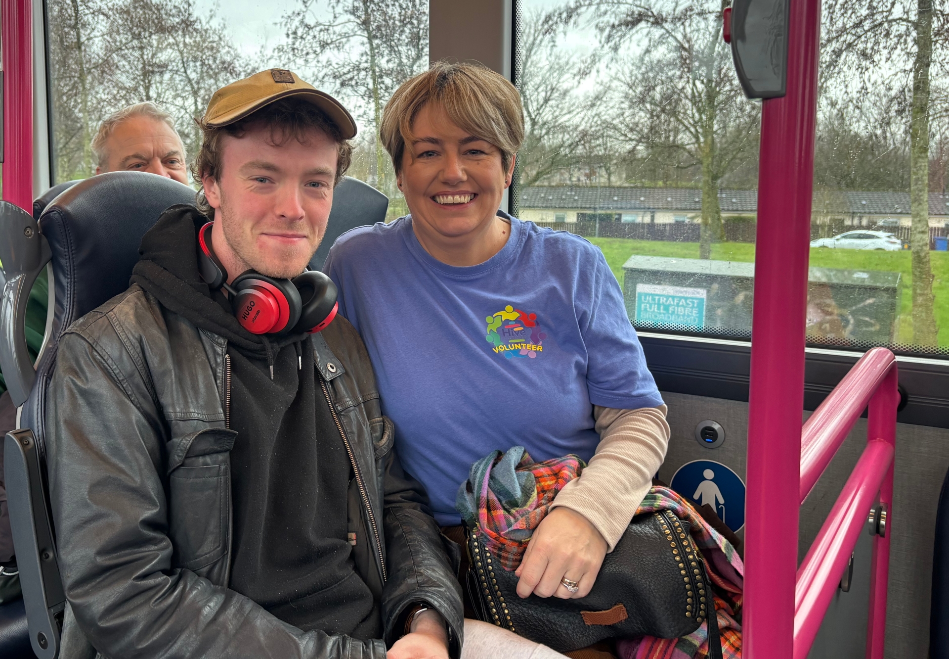 Pictured L-R: Local passenger Conan Hamilton and Anna McKinney from Hive.