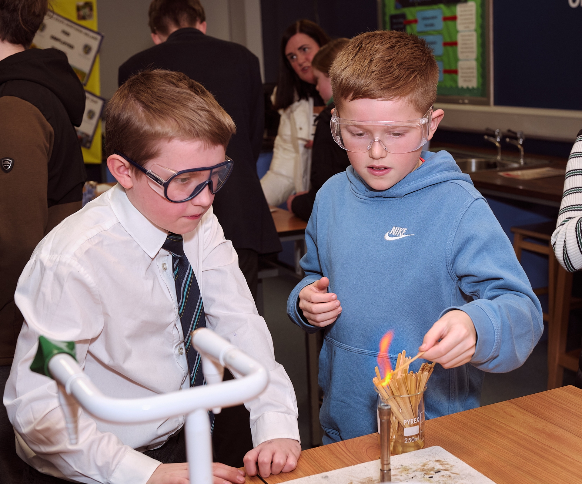 Trying out some of the experiments in the Science Department.