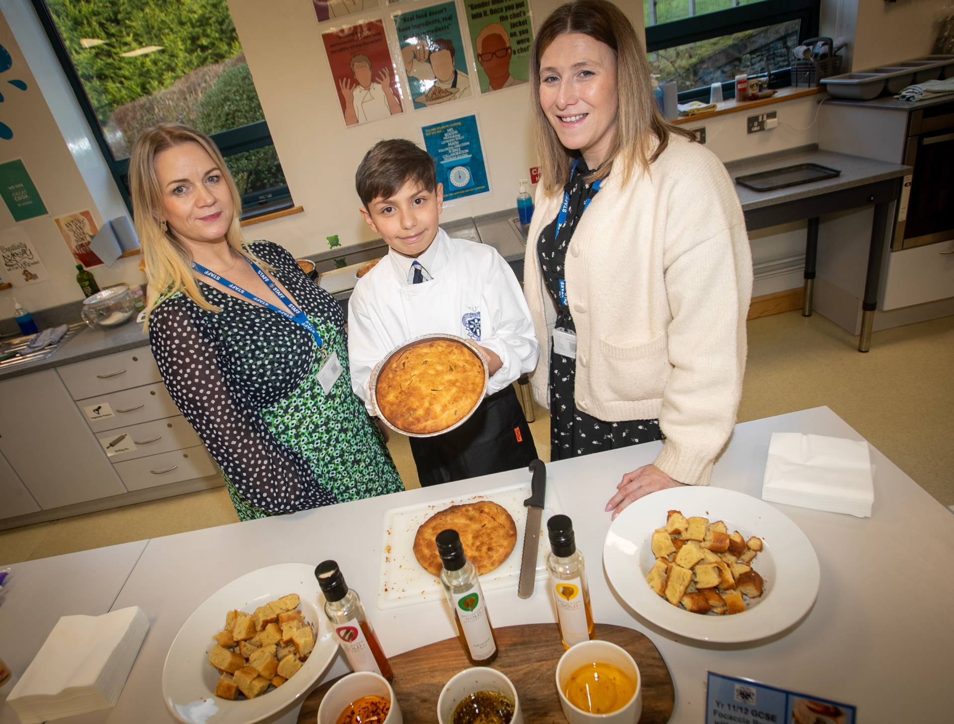 Hard at work on the HE Department during Open Day on Saturday are Amir Azizi with teachers Mrs. McQuillan and Mrs. Doherty.