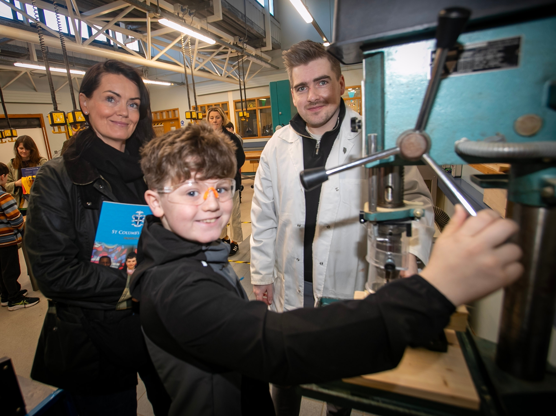 Drilling for success is P7 pupil Daniel O'Hara as mum Karen and Mr. Dylan Doherty look on at Saturday's St. Columb's College Open Day. (Photos: Jim McCafferty Photography)