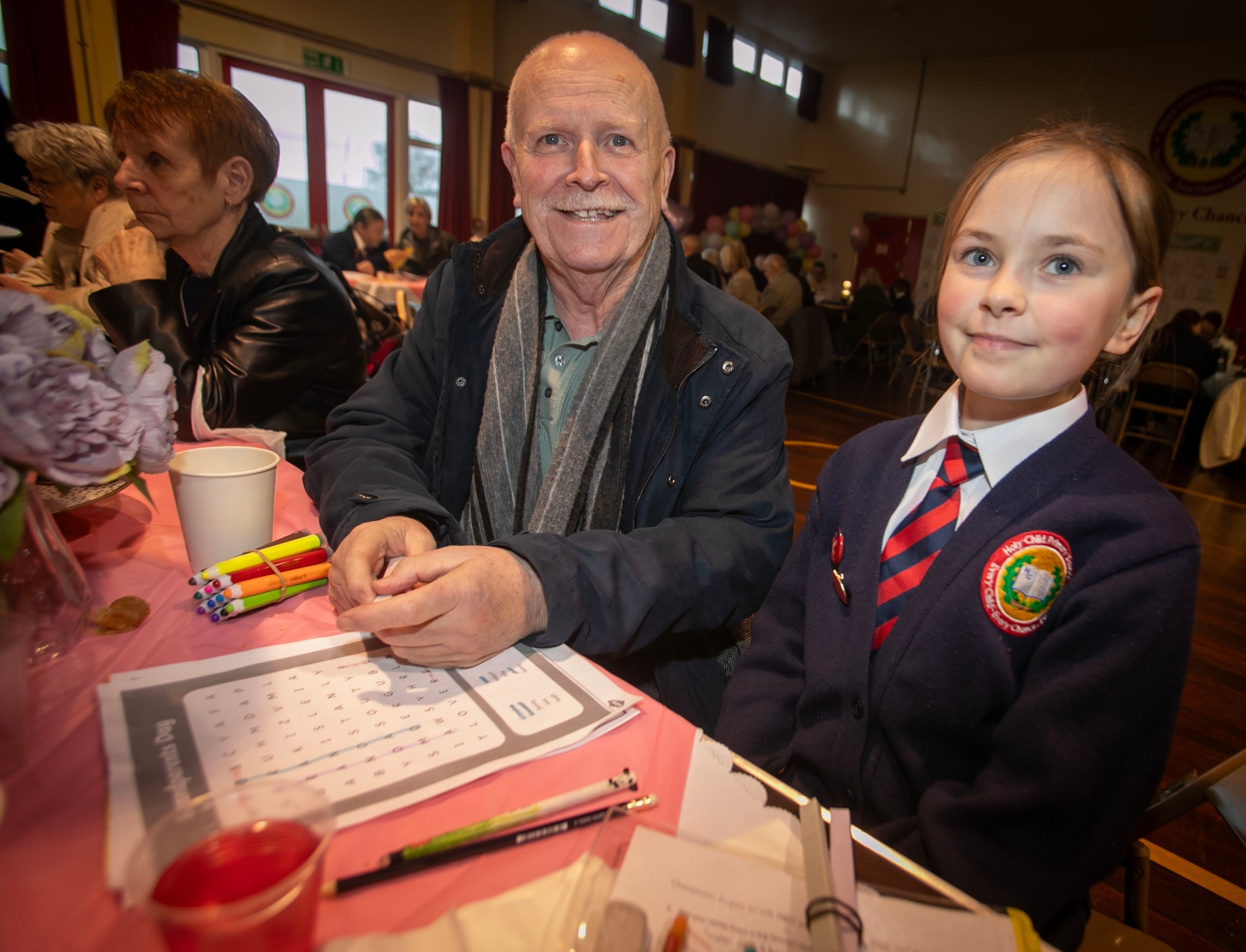 Grandad Roy Donnelly and granddaughter Freya pictured on Wednesday at Holy Child PS. (Photos: Jim McCafferty Photography)