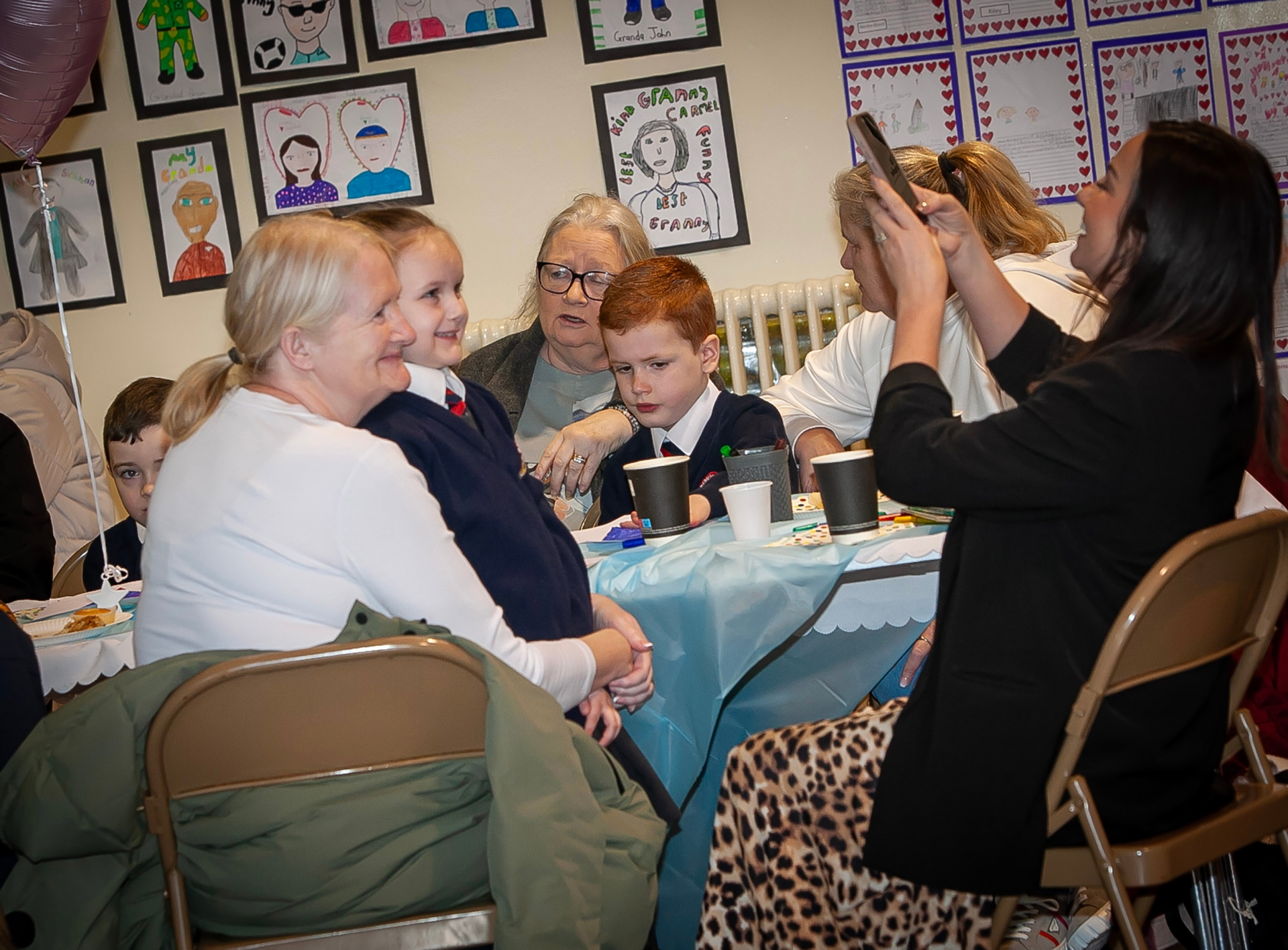 Holy Child PS Principal Mrs. Pat Concannon helping out with the photographer during Grandparents To School Day on Wednesday last. (Photos: Jim McCafferty Photography)