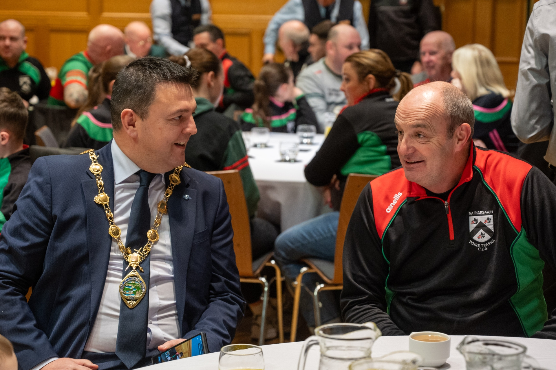 The Mayor Councillor Ruairi McHugh with Paul Simpson who is one of the founding members of Doire Trasna GAC Doire Trasna GAC.