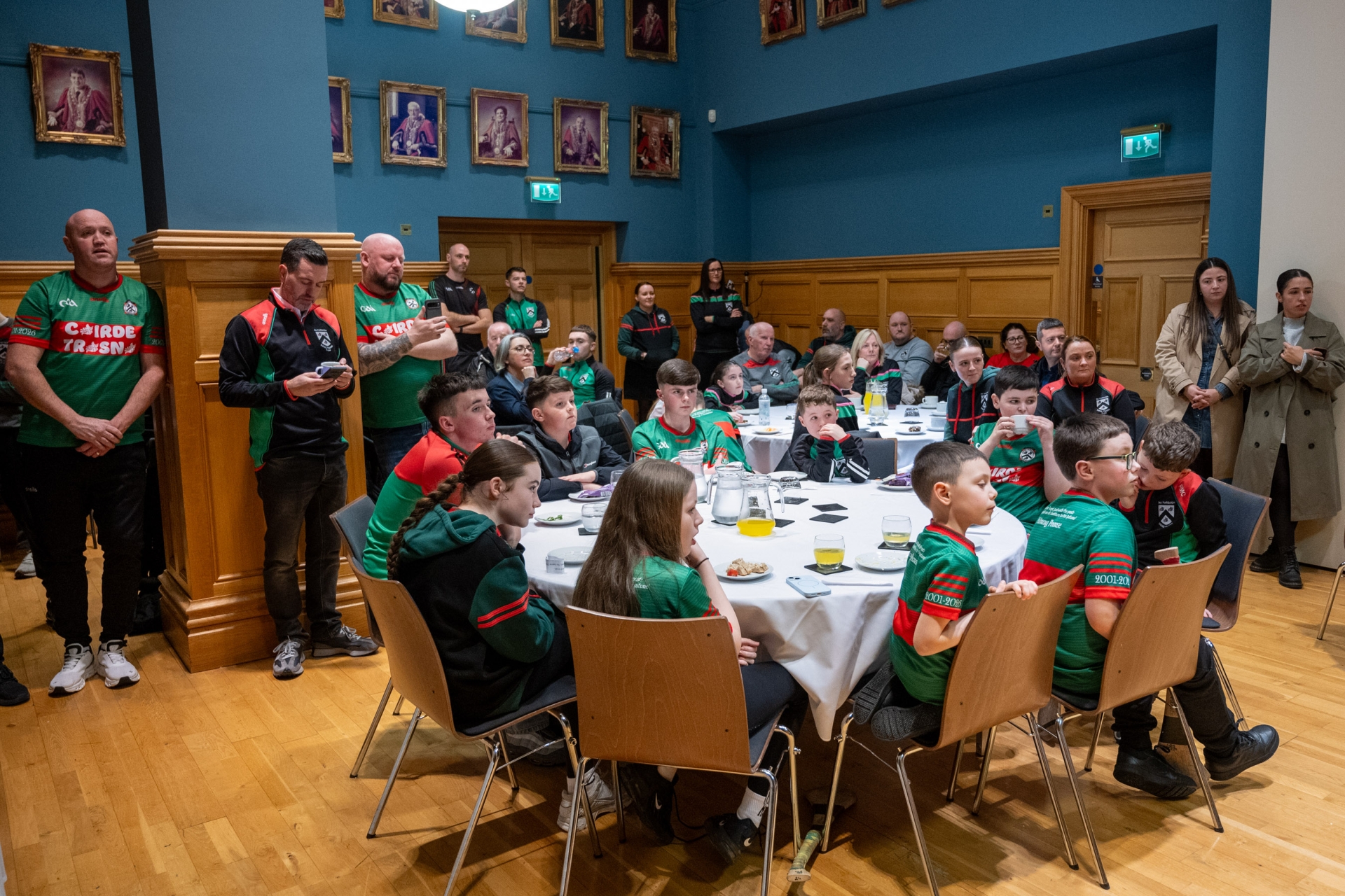 Doire Trasna GAC who are celebrating their 25th Anniversary received a commemorative crystal gift from the Mayor Councillor Ruairi McHugh in the Guildhall to mark their outstanding contribution to sport, community life and promotion of Gaelic games.