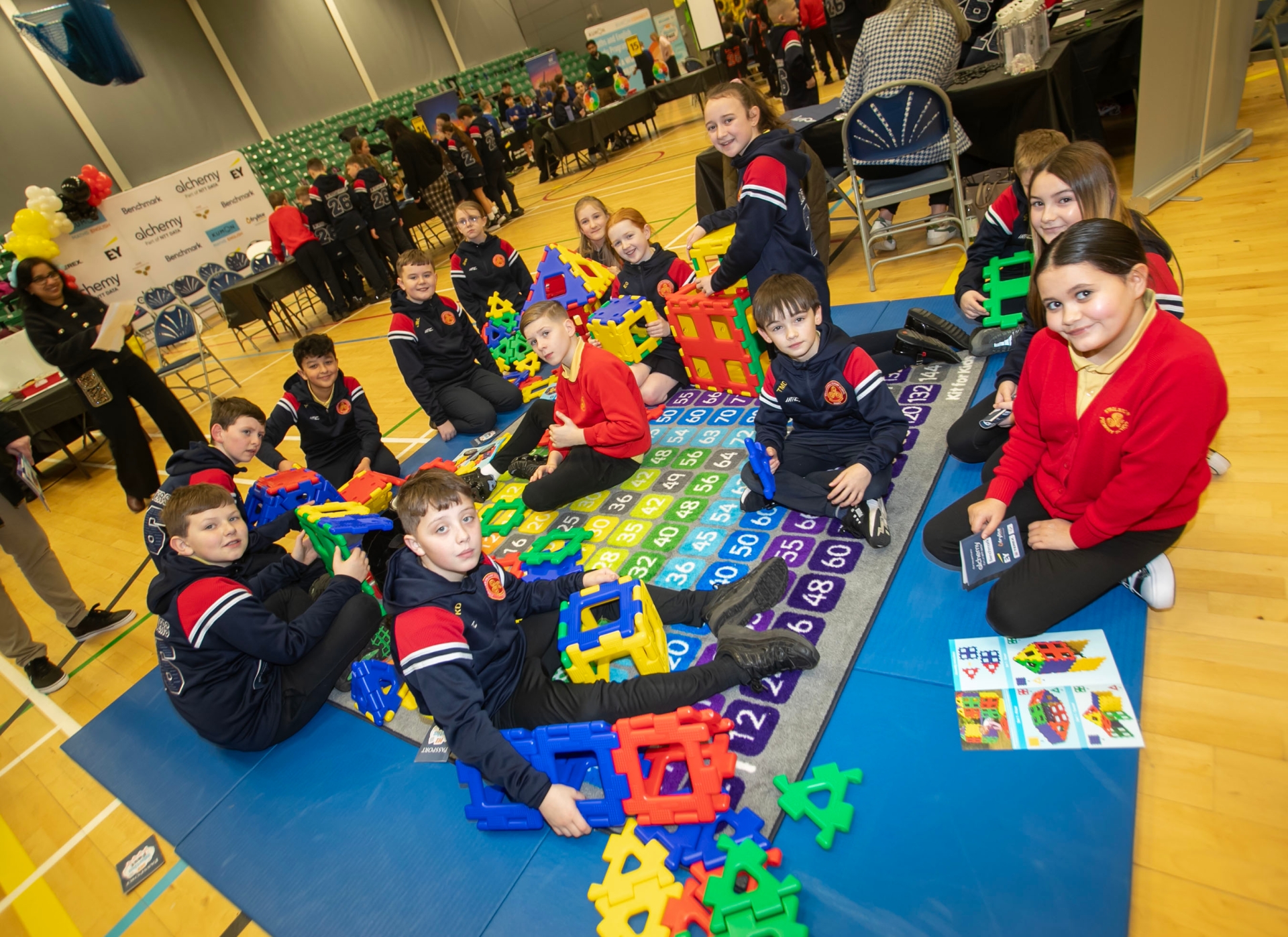 Pupils from Steelstown Primary School working hard solving some of the maths problems on Thursday.