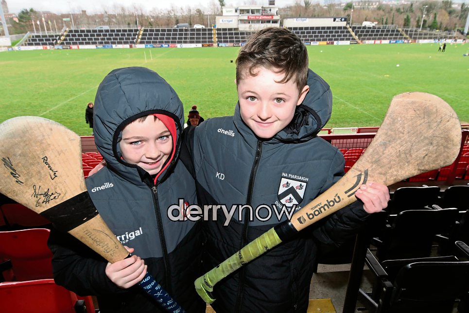 Young fans Cooper Smalls and Killian Duddy enjoyed the Derry v Kerry clash at Celtic Park on Saturday.