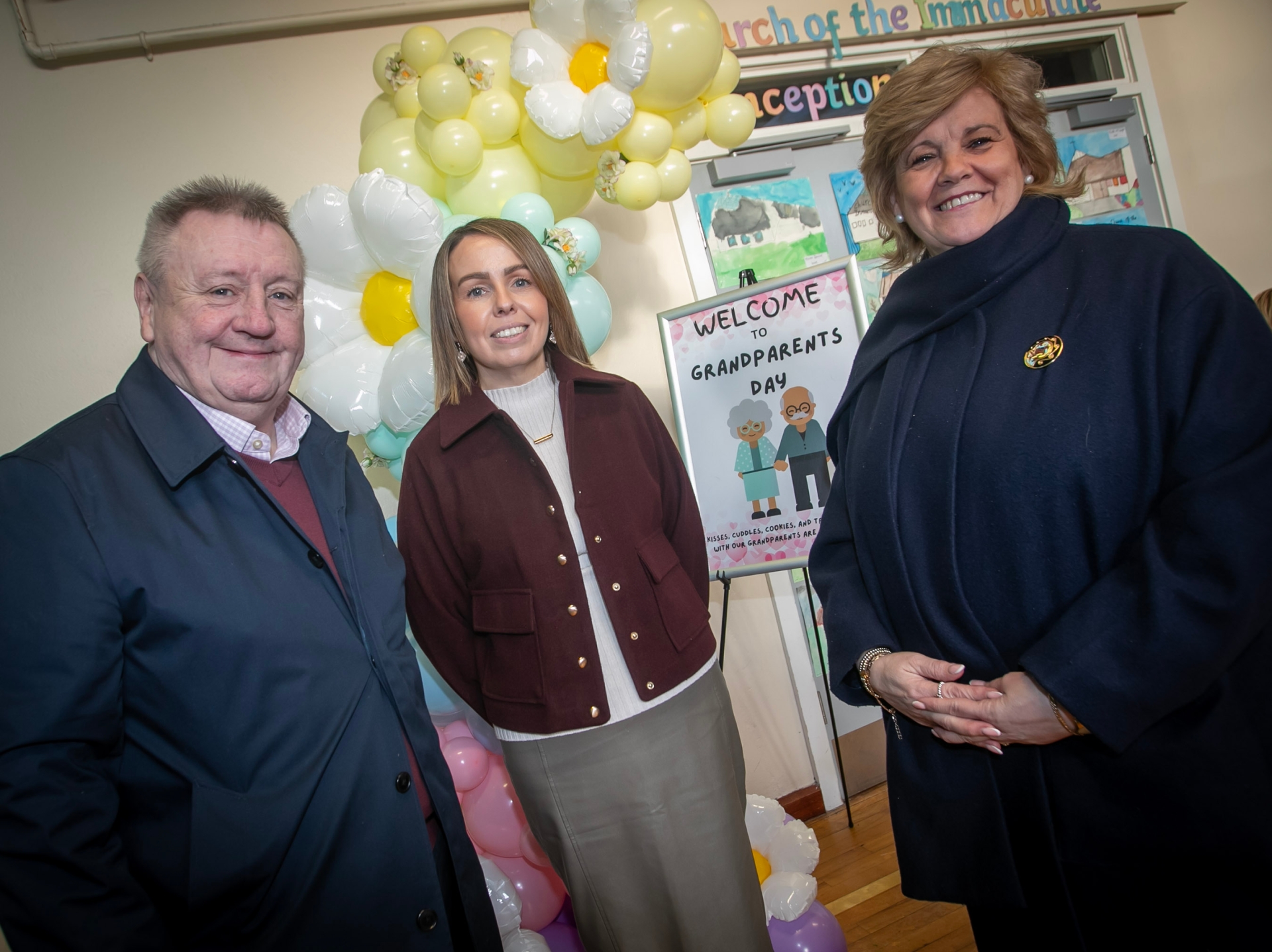 Sacred Heart PS Principal, Mrs. Louise Cunning pictured with Michael and Paula McCallion during Wednesday's 'Grandparents To School' Day. (Photos: Jim McCafferty Photography)