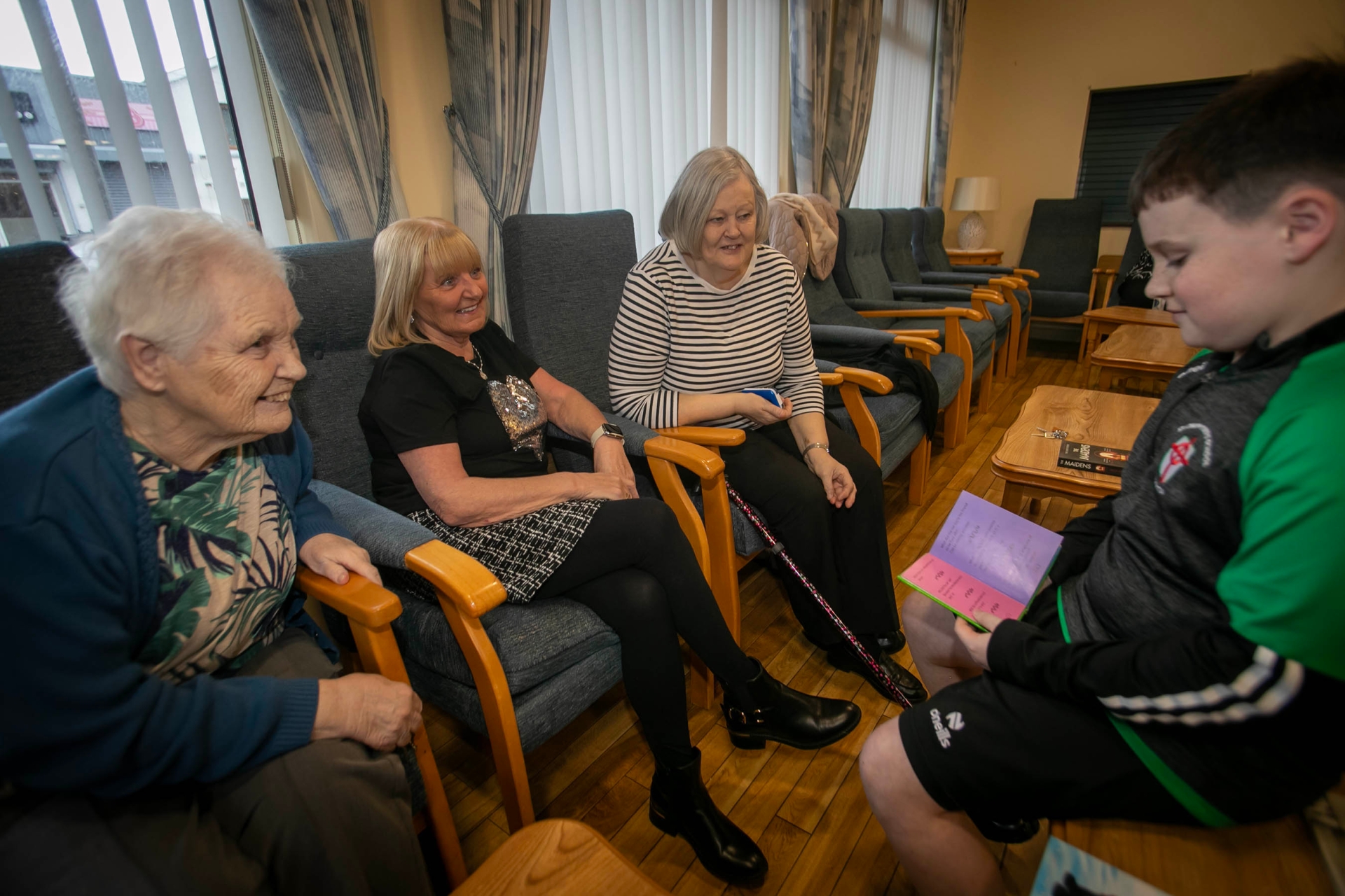 One of the young St. Joseph's students telling some jokes to a number of the residents at Beechwood Court on Friday.