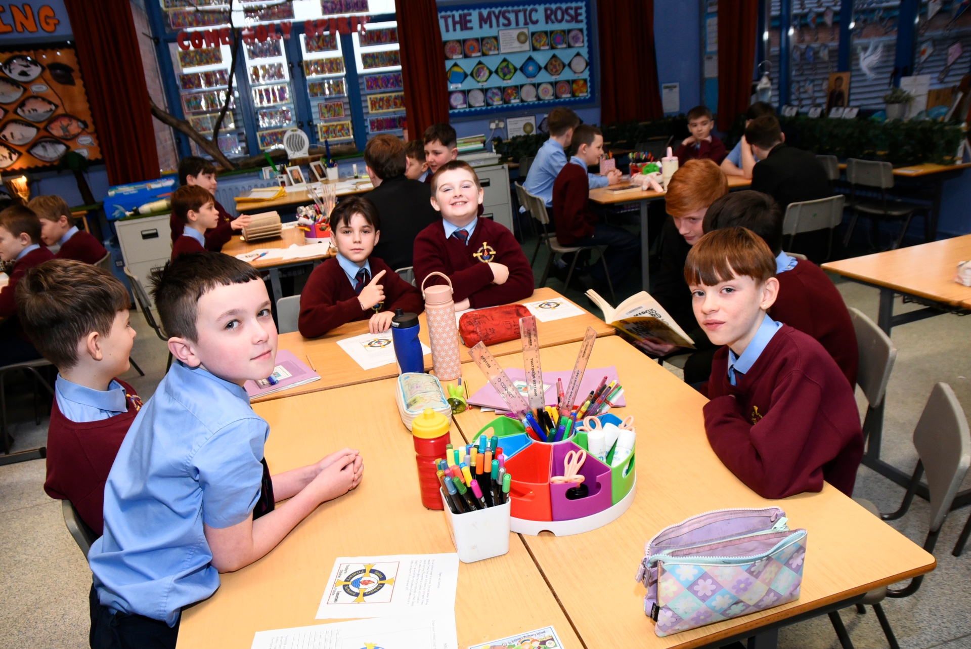 St Joseph's Boys' School student Aaron McVeigh reading to pupils from St Eithne's Primary School on International Reading Day.