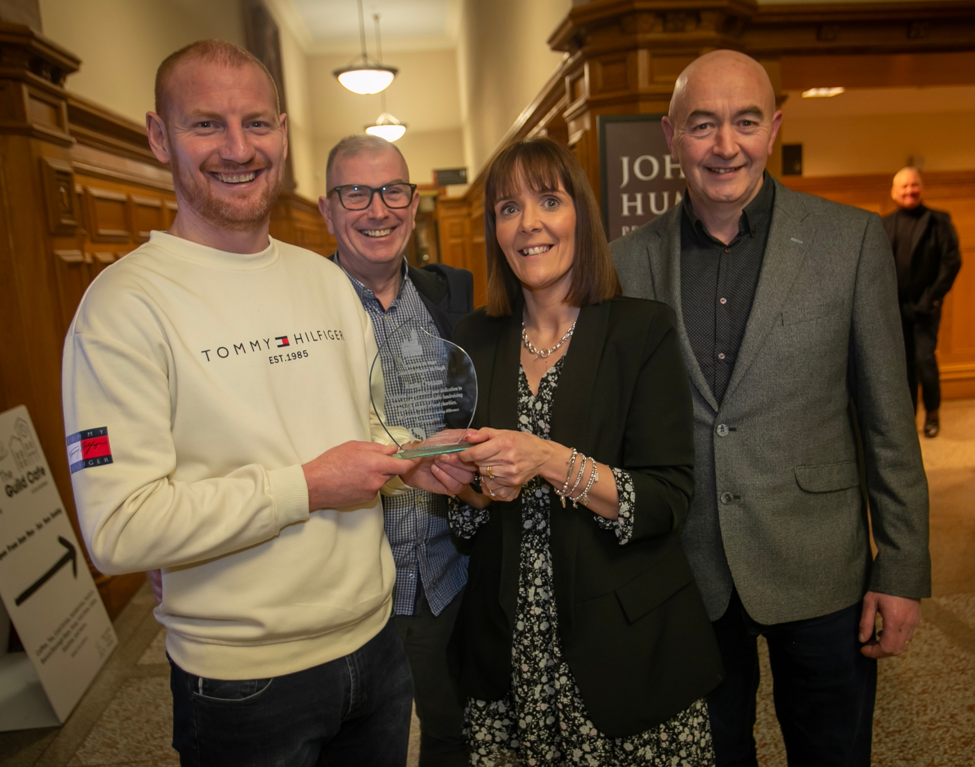 Rusty Crossan pictured with his friends Linda McGrath, Michael Duncan and Damien Carlin on Tuesday evening at the Guildhall, Derry. (Photos: Jim McCafferty Photography)