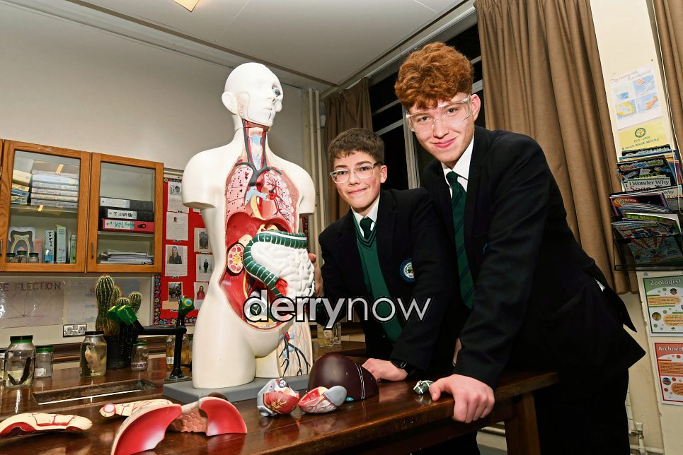 Anthony Hamill and Cathan Kelly were pictured in the Science Classroom during the St. Patrick's College, Dungiven, Open Night. (Photos: Keith Moore)