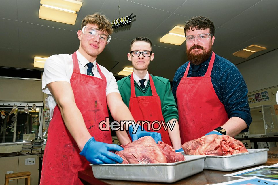Pictured in the Science Classroom during the St. Patrick's College, Dungiven, Open Night, were Pearse Murphy, Dylan McWilliams and Matthew Morrison, teacher.
