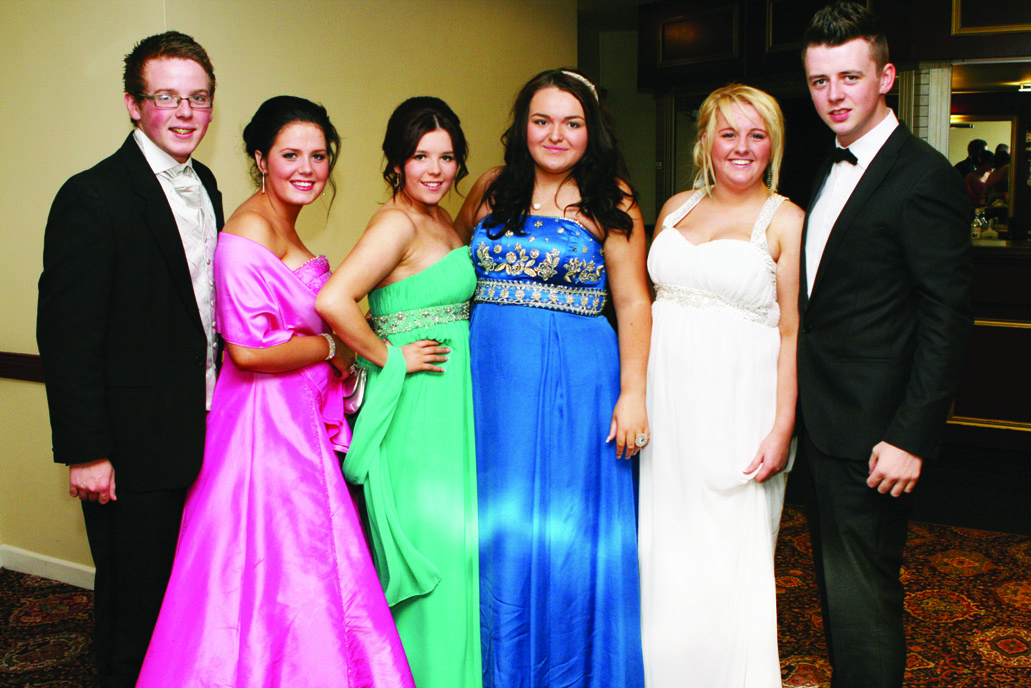 Jordan Anderson, Theresa O'Hagan, Stacey Friel, Elizabth Moran, Eimear Collins and Mark Deery at St Marys Formal in the White Horse Hotel