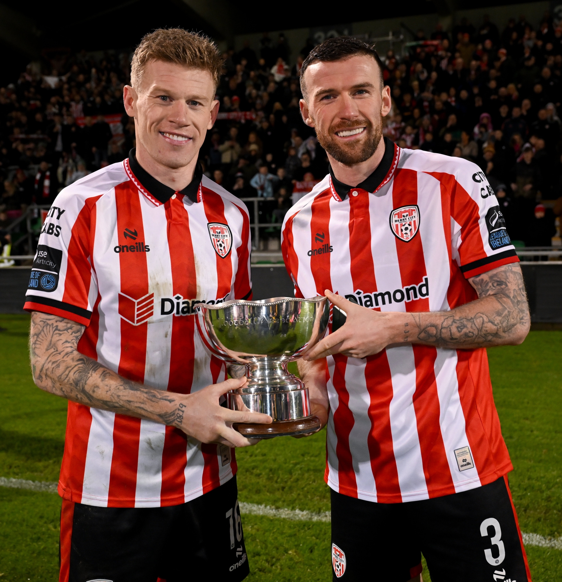 Brother James and Patrick McClean pose with the FAI President's Cup after victory. (Photo: Stephen McCarthy/Sportsfile)