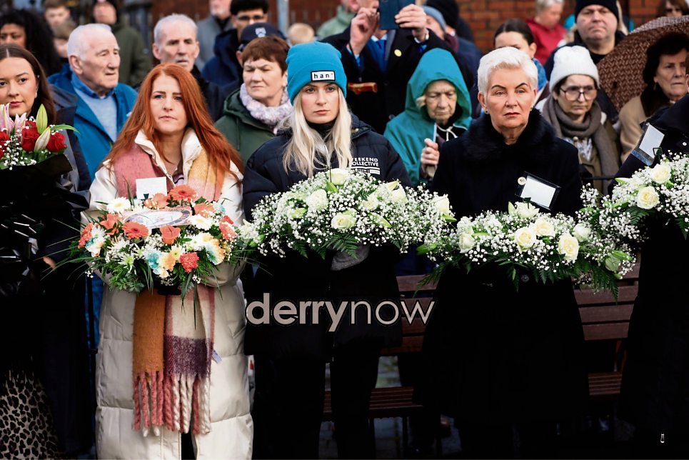 Family members carrying wreaths as they gather at the Bloody Sunday Memorial Service.