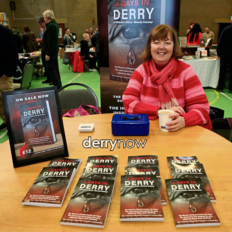 Catherine McGinty at the "4-Days in Derry" book stall.