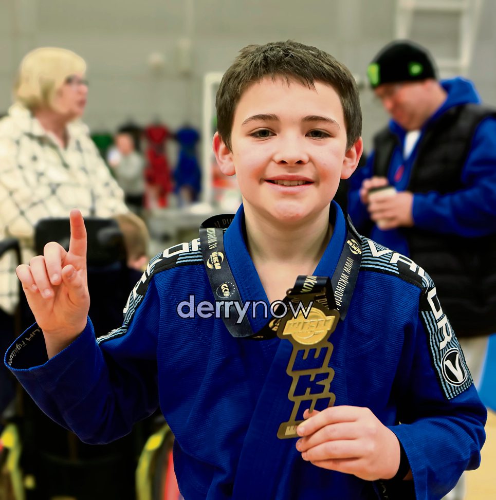 9 years old Harry Healy, Evolve Derry, winner of his fight in Brazilian Jiu Jitsu WKU Open at Foyle Arena.