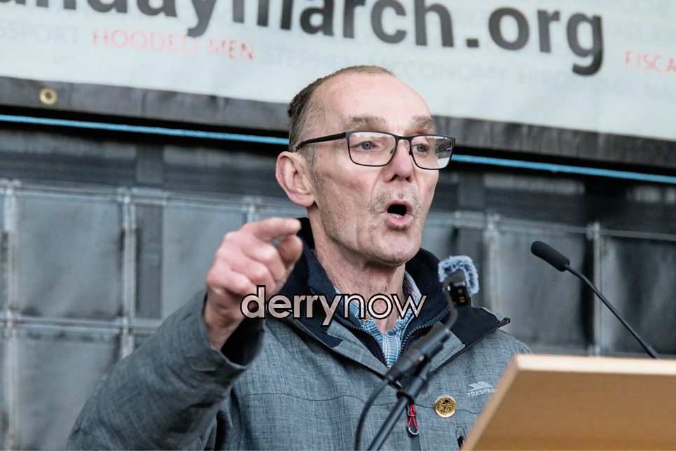 Liam Wray whose brother James was murdered by the British Paras on Bloody Sunday 1972, speaking at the "Unfinished Business March for Justice". (Photo - Tom Heaney, nwpresspics)
