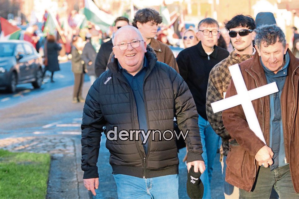 Damien "Bubbles" Donaghey, one of the wounded on Bloody Sunday in 1972, at the "Unfinished Business March for Justice". (Photo - Tom Heaney, nwpresspics)