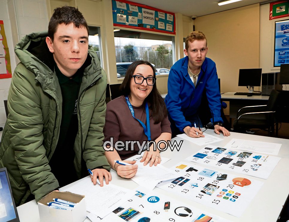 Danielle McKinney, ICT tutor with Caoimhin and Aaron, Ardnashee College students at the NI Apprenticeship Week event held at Craft Training, Springtown Industrial Estate. (Photos - Tom Heaney, nwpresspics)