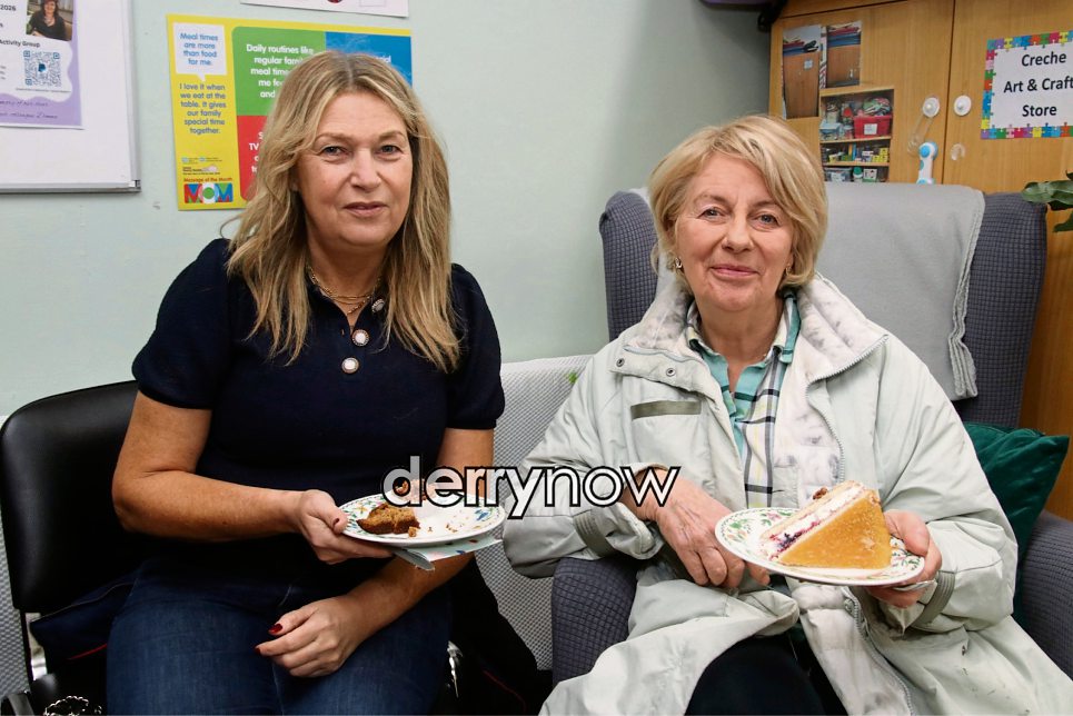 Ríonagh Duffy and Collette Anderson enjoying a nice piece of cake.