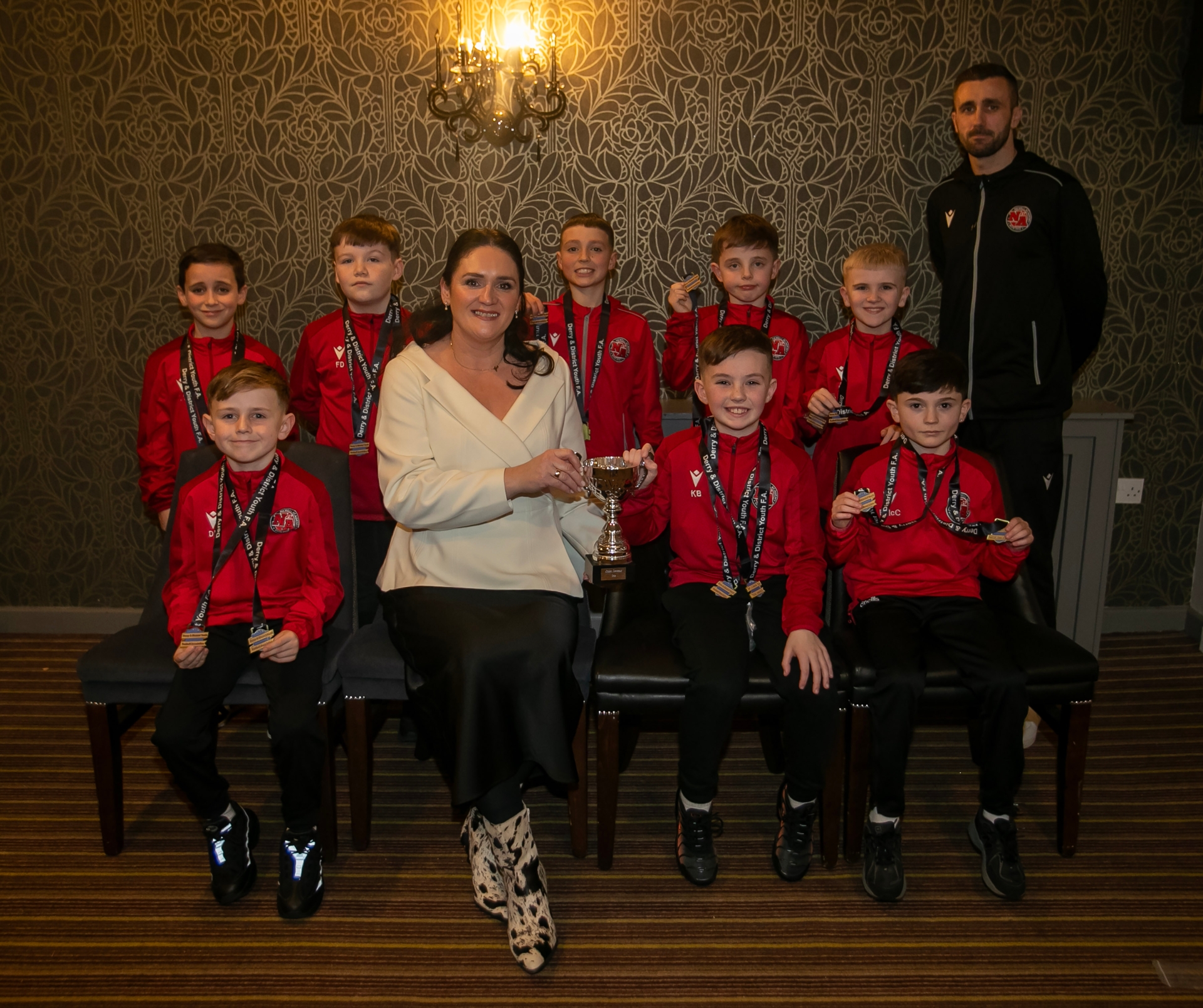 Newell Academy u-9s, Winter Cup winners and Summer Cup runners-up, pictured at the D&D Annual Awards at the Waterfoot Hotel on Friday night. Included is Councillor Aisling Hutton. At back is coach Daniel Lafferty.