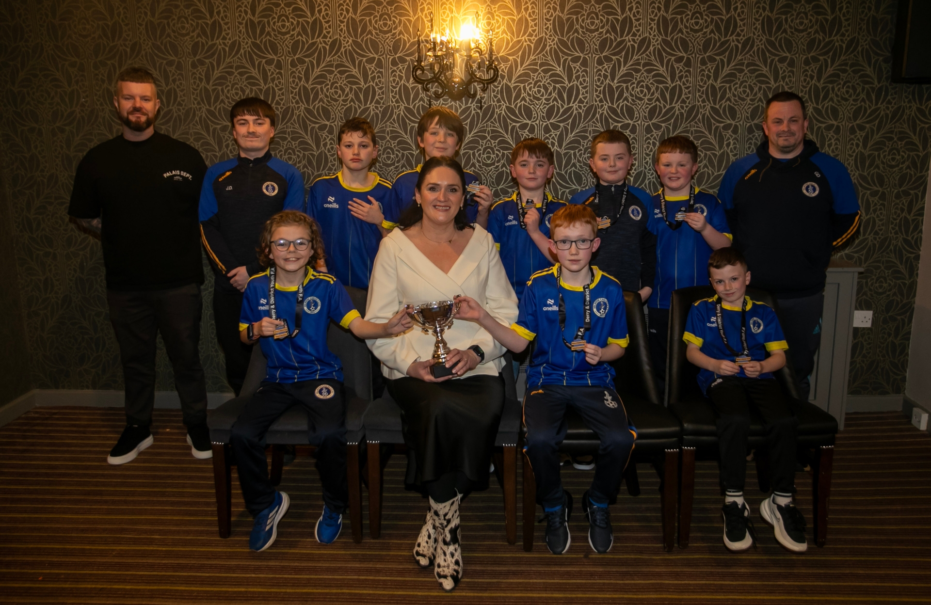 Eglinton Eagles u-10s, Summer Cup winners,, pictured at the D&D Annual Awards at the Waterfoot Hotel on Friday night. Included is Councillor Aisling Hutton. At back are coaches Gareth Doherty, Jamie Doherty and John Hillen.
